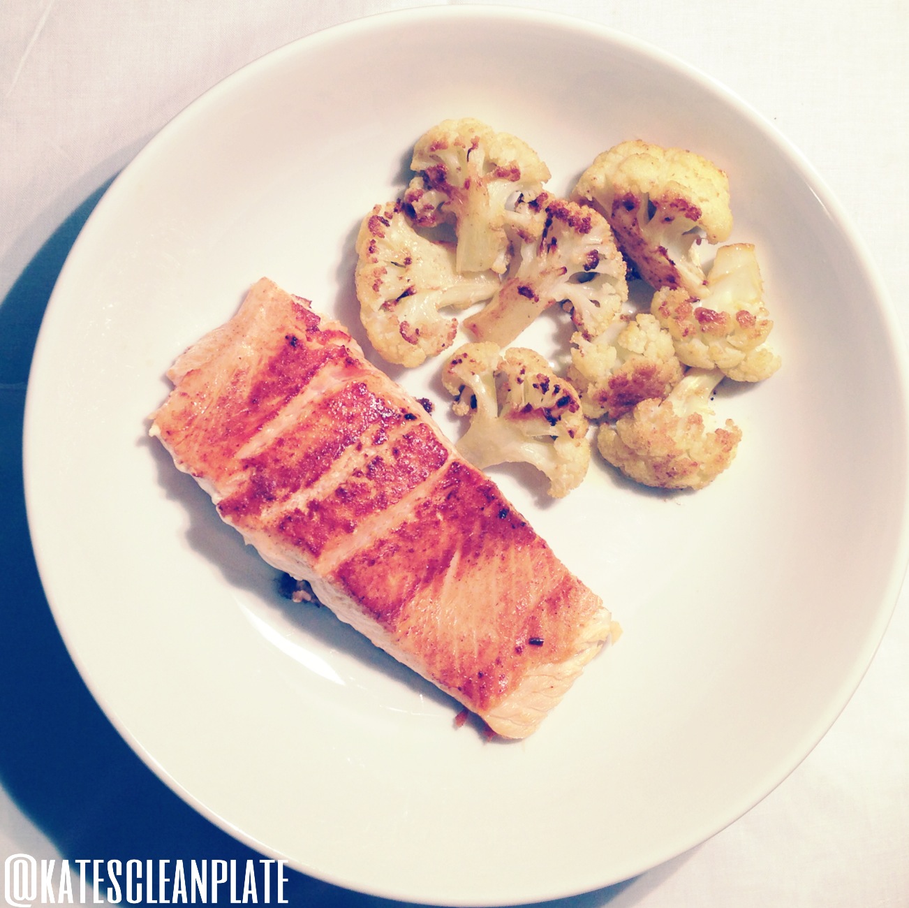 Once fish is cooked throughly ( it should be an opaque color inside and firm) serve with roasted curry cauliflower and maybe a glass of white wine