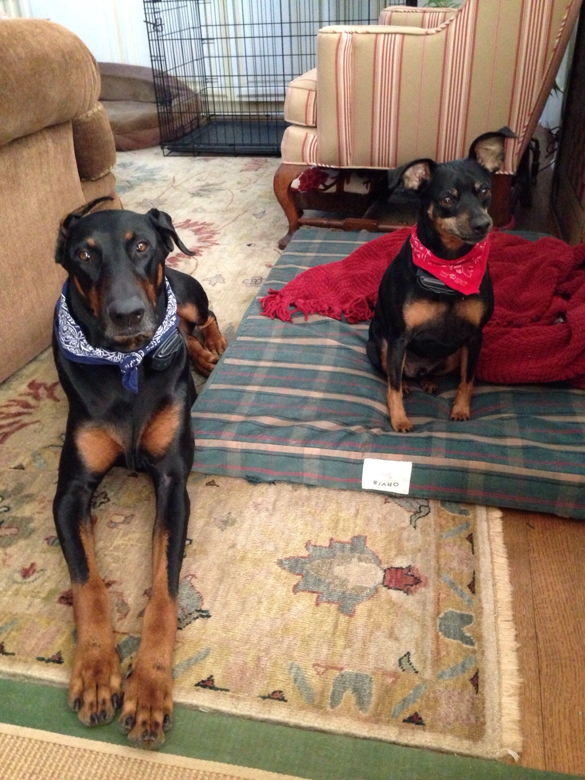 We have two dogs, nooks ( min pin ) and Zurich ( Doberman ) I bet you can guess which one is the boss??