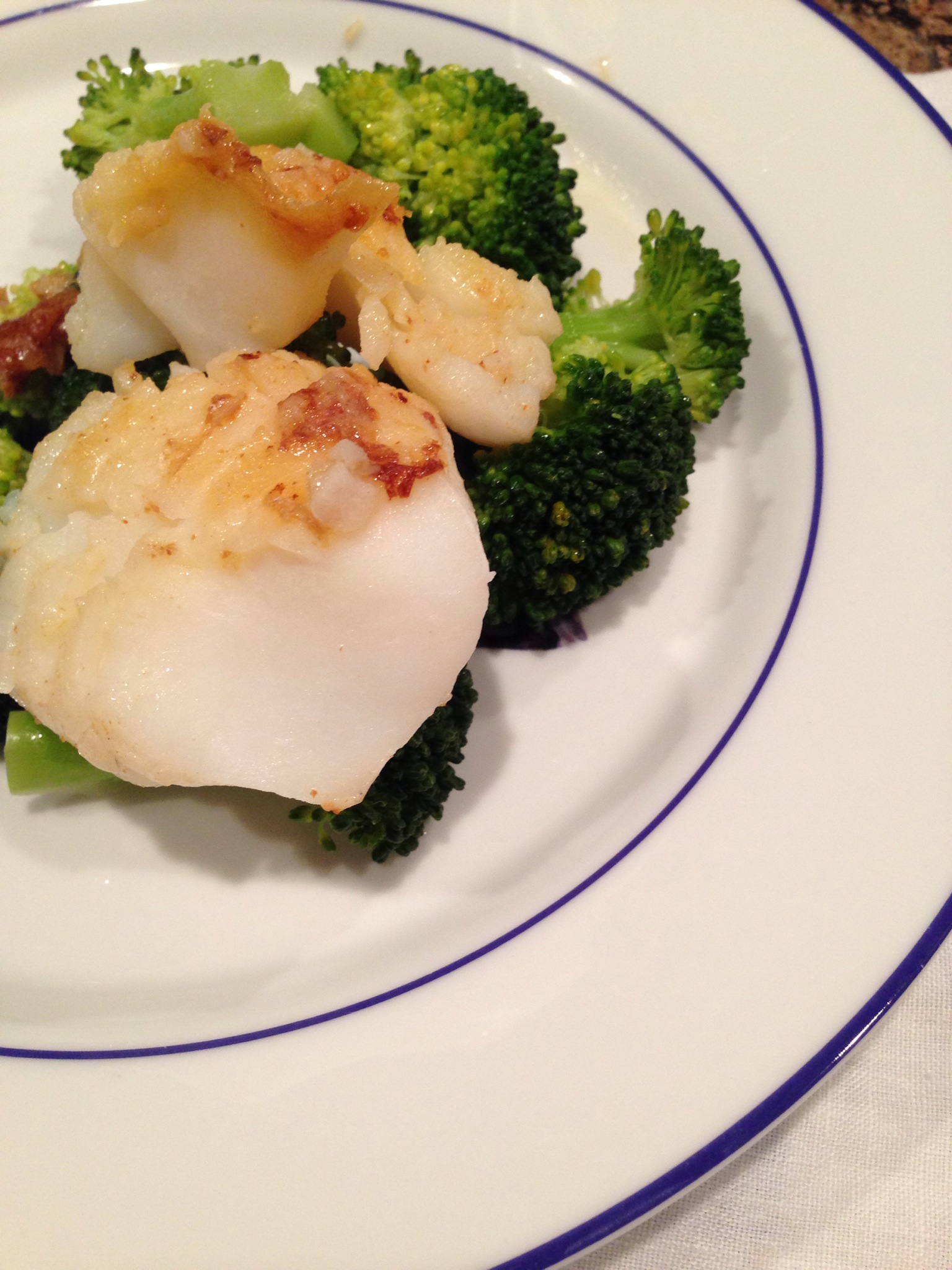 Steam broccoli while fish is cooking, its done when you can easily put a fork through it and its super green. Feel free to put a nice piece of grassfed butter on it!