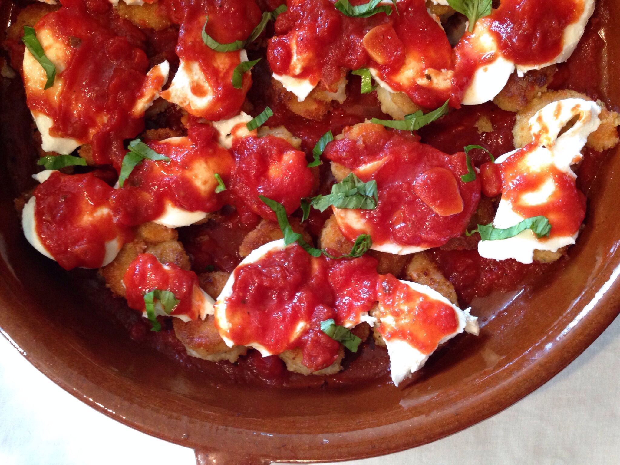 -3 med size balls of fresh mozzarella or 1 lg (you can find it fresh in the cheese section of your grocery or speciality market. Using fresh makes all the difference!)
