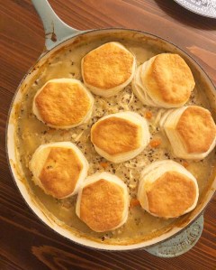 Creamy chicken and rice with flaky biscuits